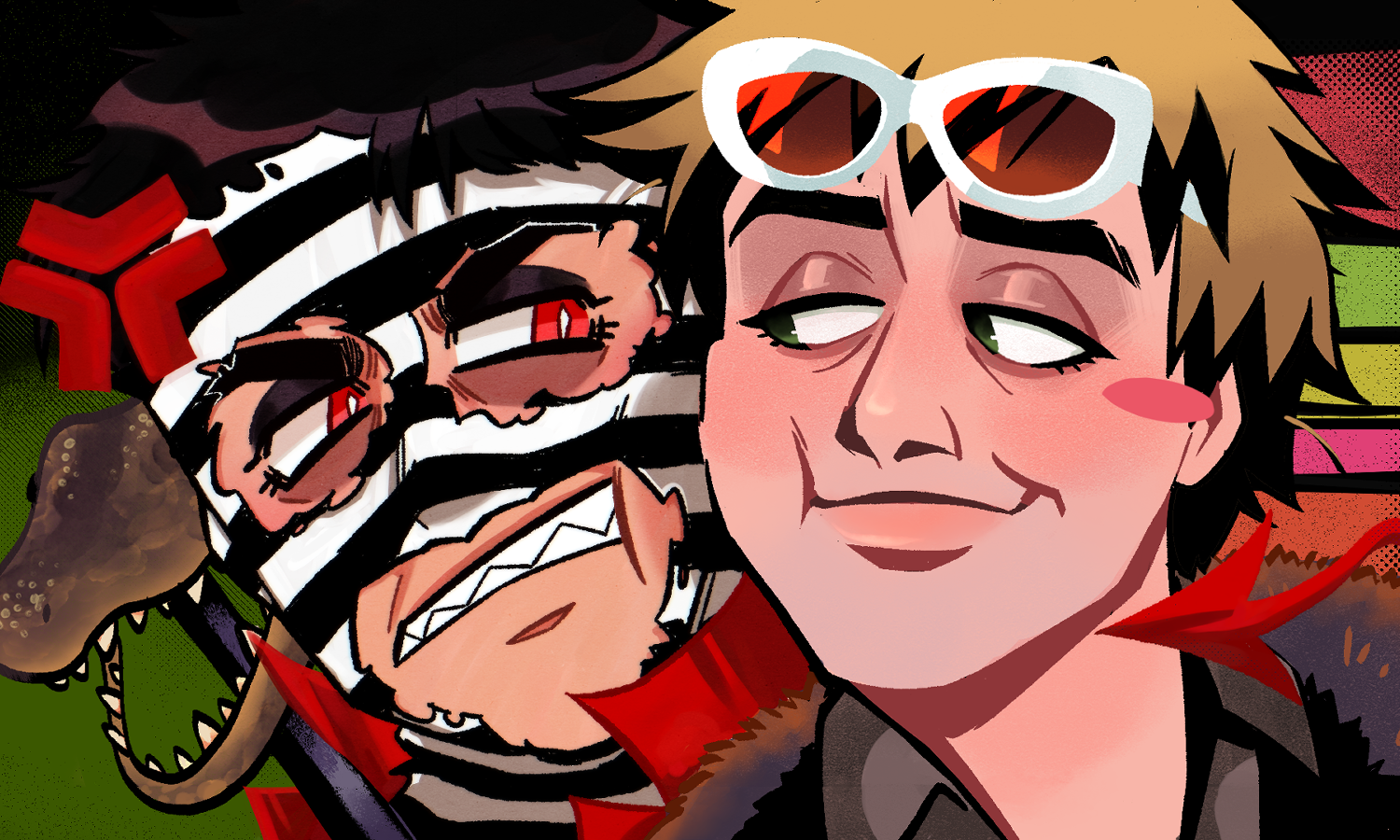 Keep your friends close and your enemies as close as possible with this matching button set! Featuring frontmen from two bands that are TOTALLY not "green day", Wilhelm Fink and The Reverend Strychnine Twitch!!
